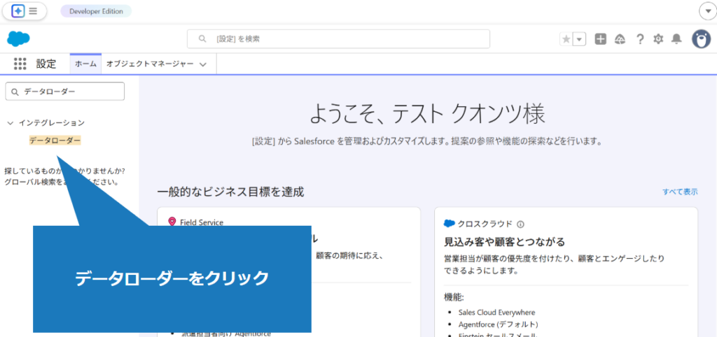 3.クイック検索で「データローダー」と検索