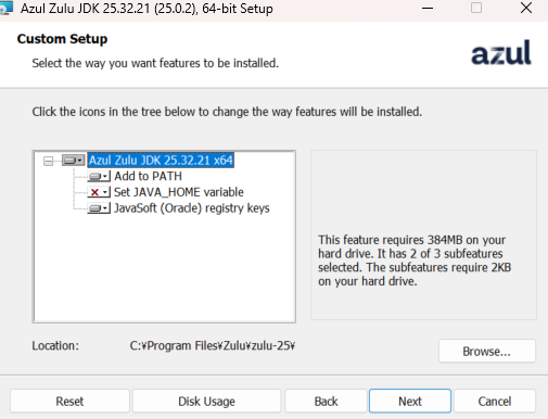 Javaがインストールされていない場合は事前にインストールします。