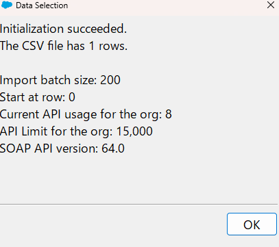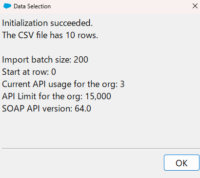 今回インポートするcsvの情報がポップアップで表示されます。「OK」をクリックします。