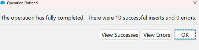 インポートが完了し、インポート結果の概要が記載されたポップアップが表示されます。今回は無事10件のインポートが成功したため、「View Successes」をクリックして結果を確認します。