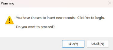 Insertの確認画面が出てくるため、「はい」をクリックします。