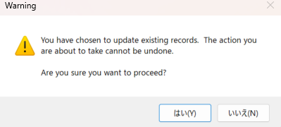 確認のポップアップが表示されますので、「はい」をクリックします。