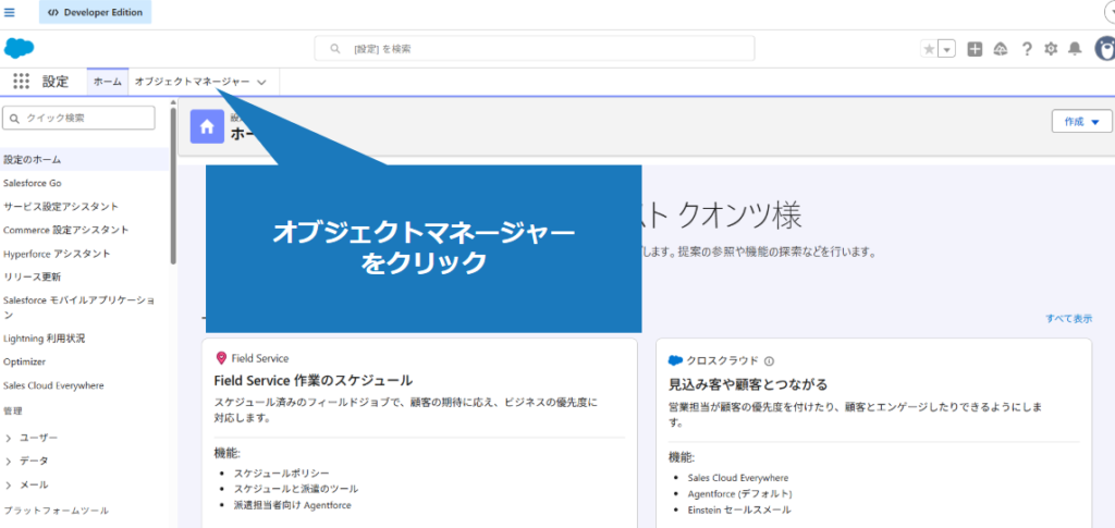 2.オブジェクトマネージャを選択