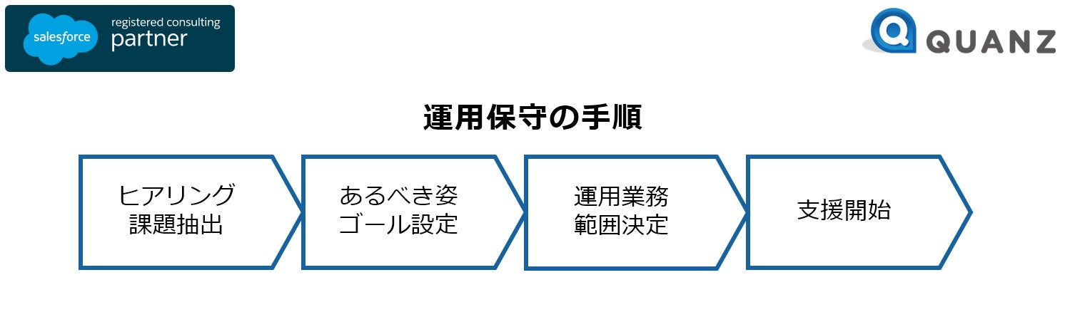 株式会社クオンツでは、今後も株式会社セールスフォース・ジャパンが提供するSalesforceを活用したCRMやSFA、MAの新規導入や、すでに導入済みの企業様の運用支援を行うことで、企業様のデジタル化推進およびデータ活用によるアクション推進に尽力してまいります。